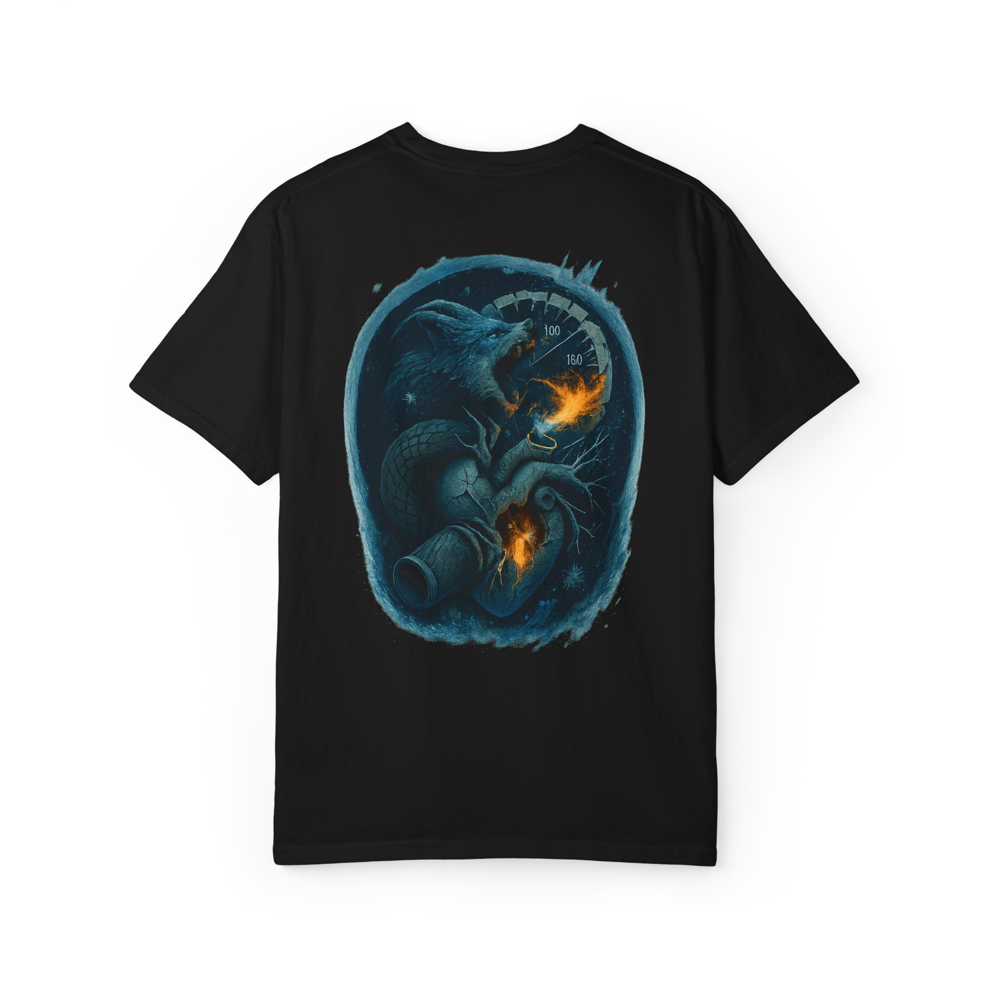 Unleash the primal force within with the CryoWolf T-Shirt, the centerpiece of the Frost Circuit collection. This isn't just a shirt; it's a testament to raw, untamed passion and the adrenaline rush of life lived at full speed.